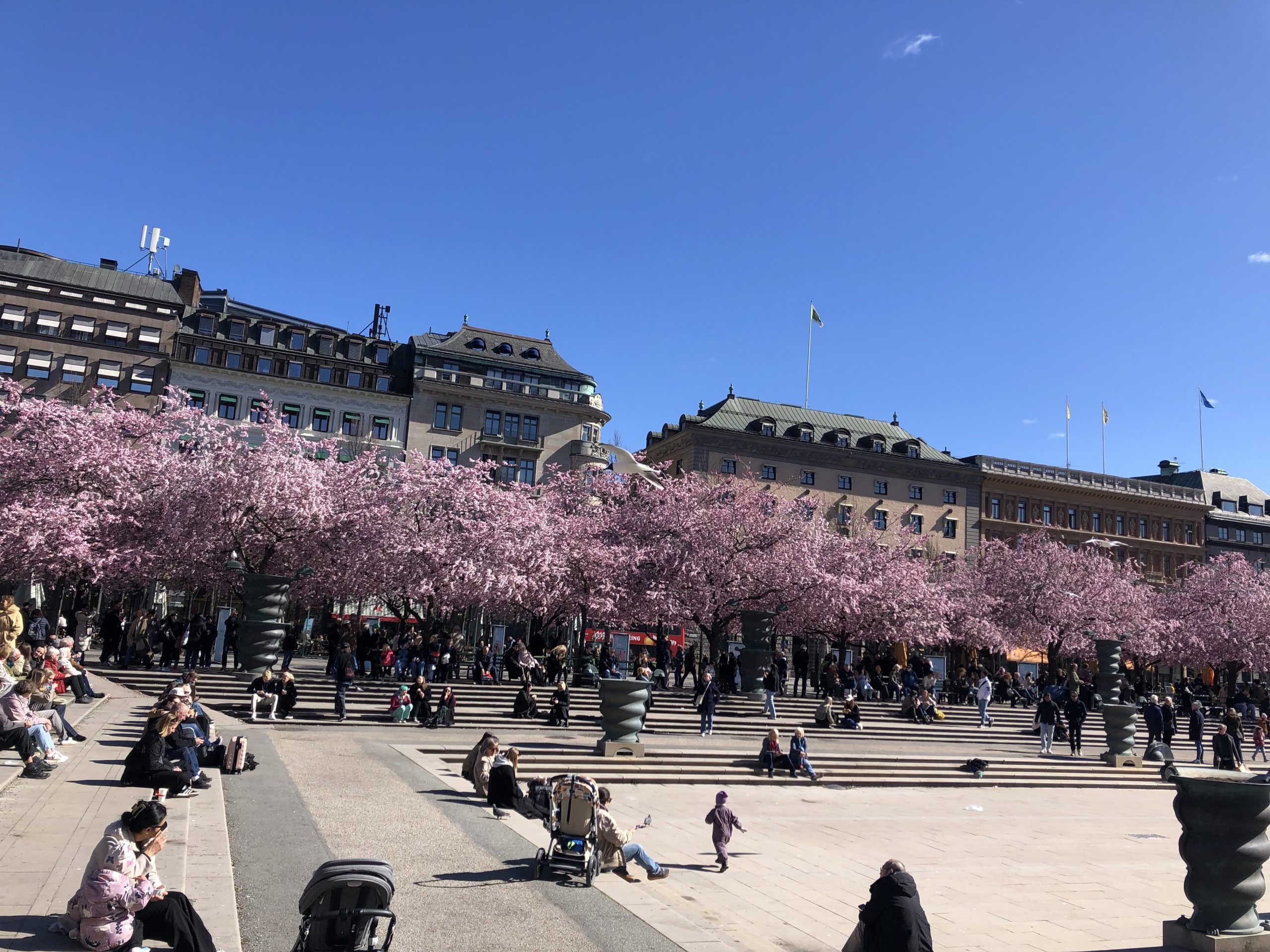 Körsbärsträden i Kungsträdgården blommar! Välkommen att möta våren under en guidad tur i Stockholm.